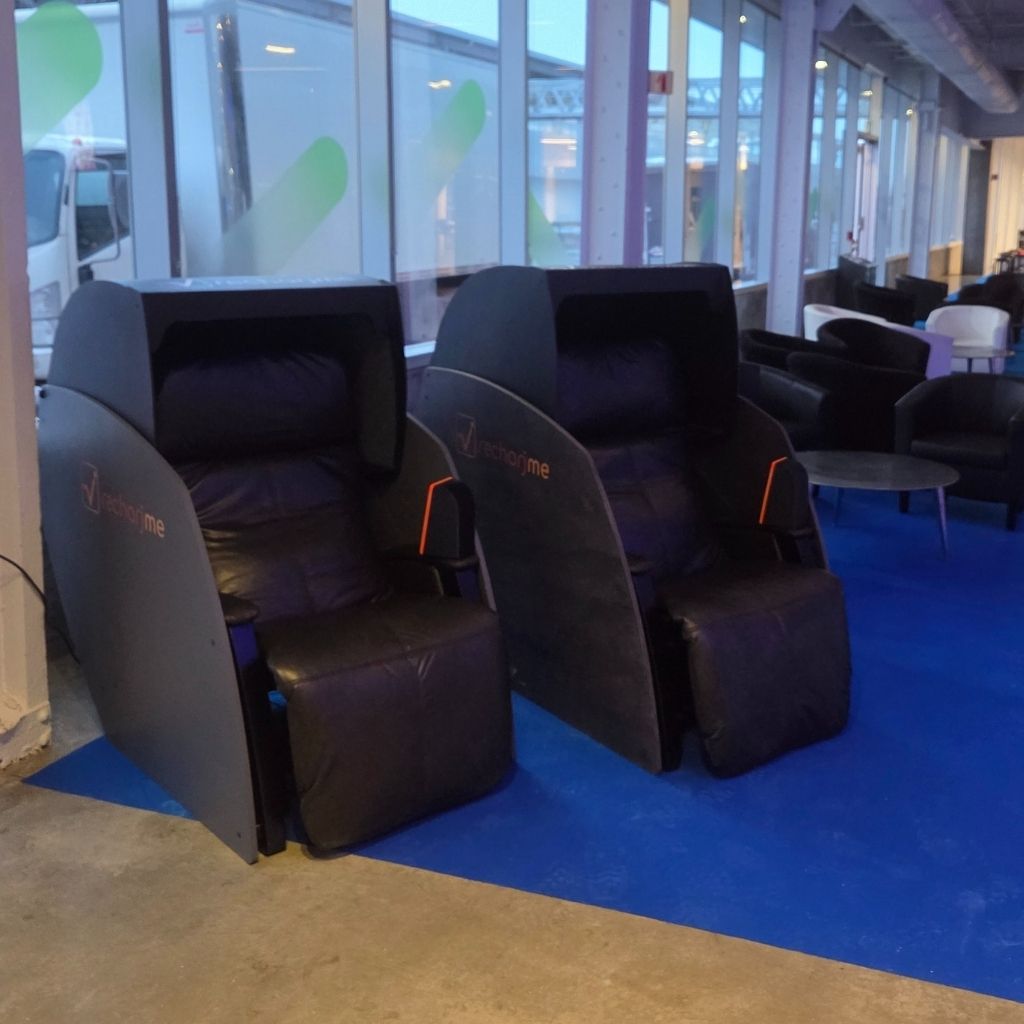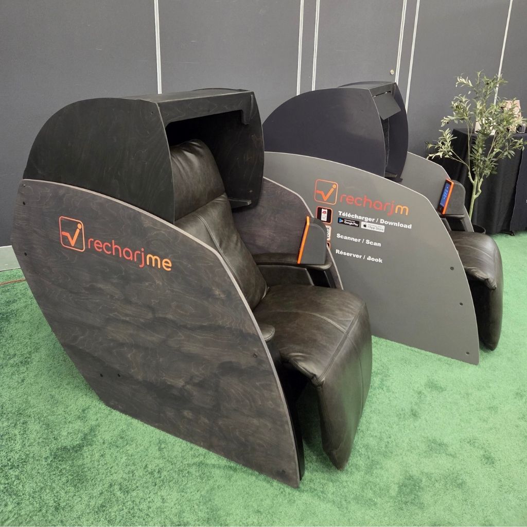 En 2018, naît l’effet Recharjme avec sa première cabine de repos, une solution pour favoriser détente, énergie et performance au quotidien.